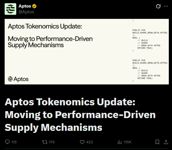 - Aptos Foundation plans a tokenomics overhaul to reduce APT supply growth