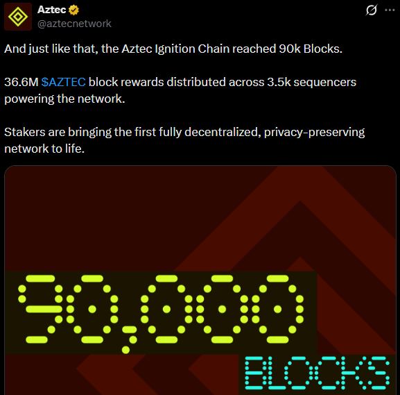 Additionally, more than 33 million AZTEC tokens were staked within the first 24 hours following its latest exchange listings, a development that may reflect longer-term positioning among early participants.
