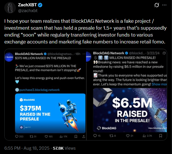 The statement quickly circulated across crypto social media, adding pressure on the BlockDAG team to address the accusations. But As of now, the project has not publicly provided a detailed response to every claim raised by investigators.