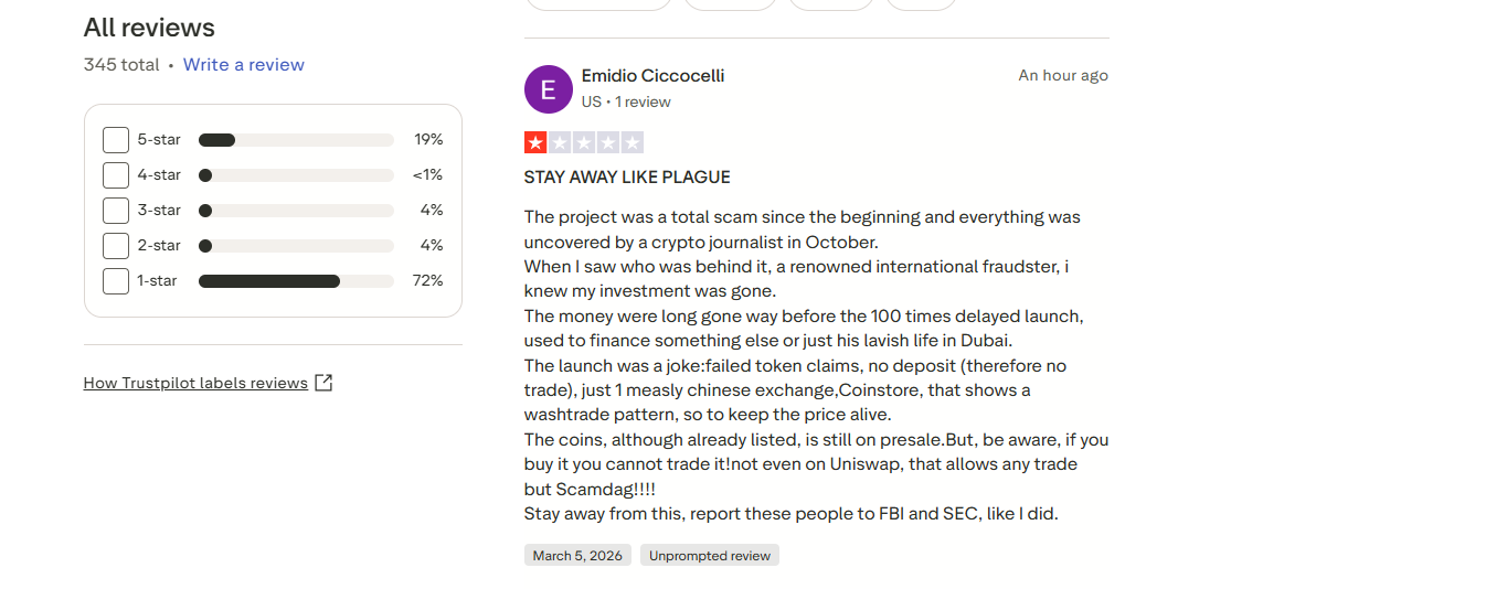 - User reviews and community discussions show growing skepticism, with many investors warning others to approach the project cautiously.