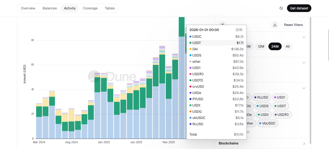 The broader market is already moving in this direction. Stablecoin usage alone shows how quickly things are scaling. According to Dune Analytics, stablecoin transfer volume exceeded $10.5 trillion in a single month earlier this year.