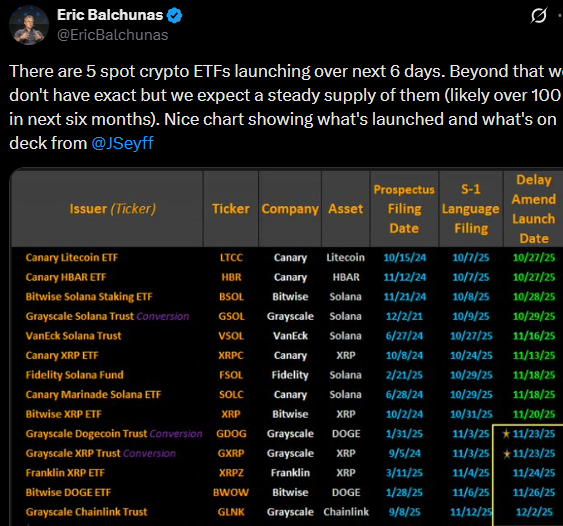 But something changed this year. Instead of a trickle, there's now a pipeline. Bloomberg Senior ETF Analyst Eric Balchunas shared the outlook last week: