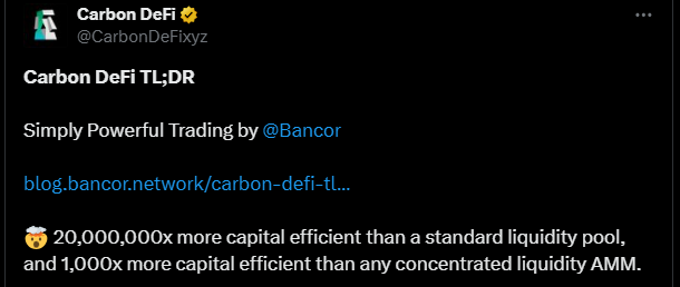 - Carbon DeFi is a next-generation onchain trading engine built by Bancor and deployed on COTI.