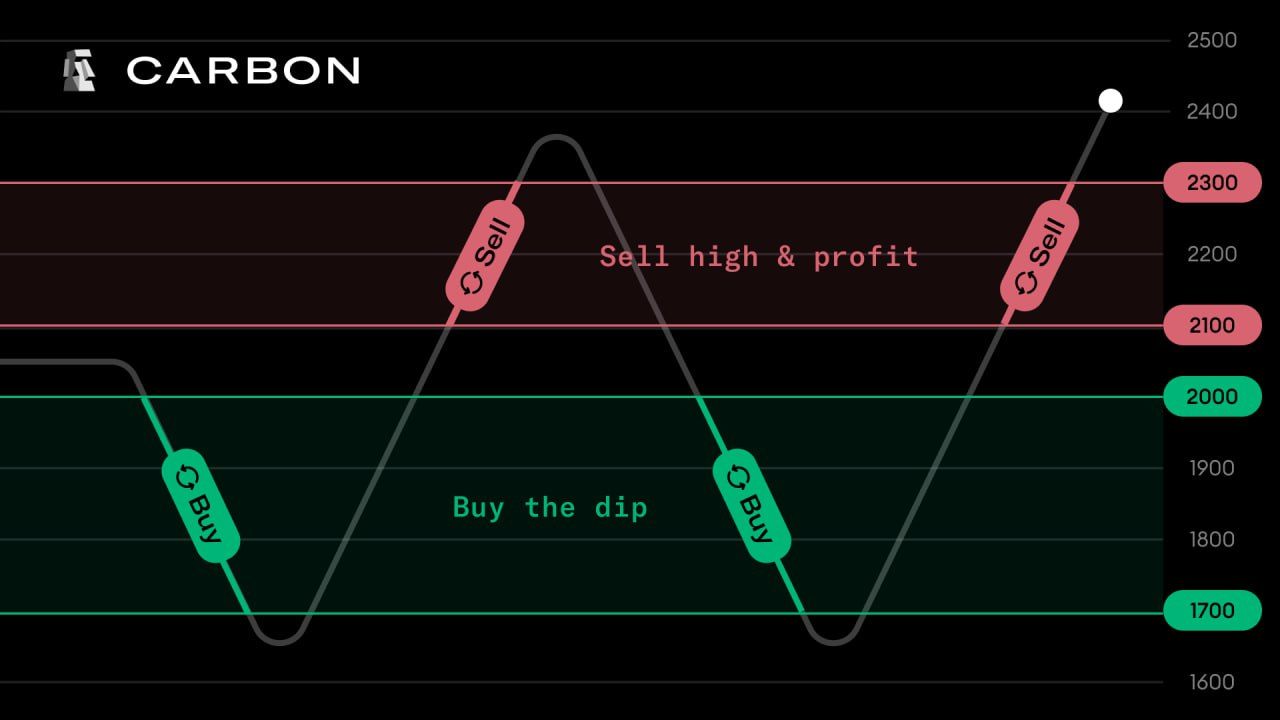 The holy grail of trading is automating the cycle. Traditional AMMs don't let you do that. CEXs let you approximate it, but bots and fees eat into performance. Carbon solves this at the liquidity level. You set: