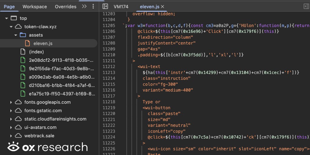 What makes this phishing campaign more concerning is how it's built under the hood. The malicious code is intentionally hidden and difficult to detect. OX Security found that the wallet-draining logic is embedded inside a JavaScript file named "eleven.js."