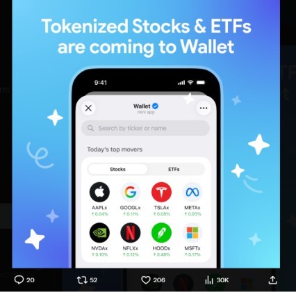 The line between traditional finance and crypto just blurred even further. Wallet in Telegram, the popular crypto wallet built into the messaging app, has announced a new integration with xStocks, bringing tokenized versions of US stocks and ETFs directly into Telegram.