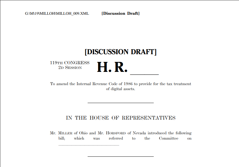 - US lawmakers released a draft bill to reshape crypto taxation rules
